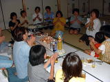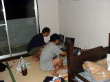不信なお父さん この部屋はつぼみOBの部屋 お父さん達は飲む場所がなくて、ここを陣取る 3台のパソコンで300枚以上のデジカメ写真を整理 お父さんは覗いているだけです。 |