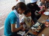 二日目にお母さんのひとりが誕生日 皆でショートケーキとろうそくでお祝いしました。 |